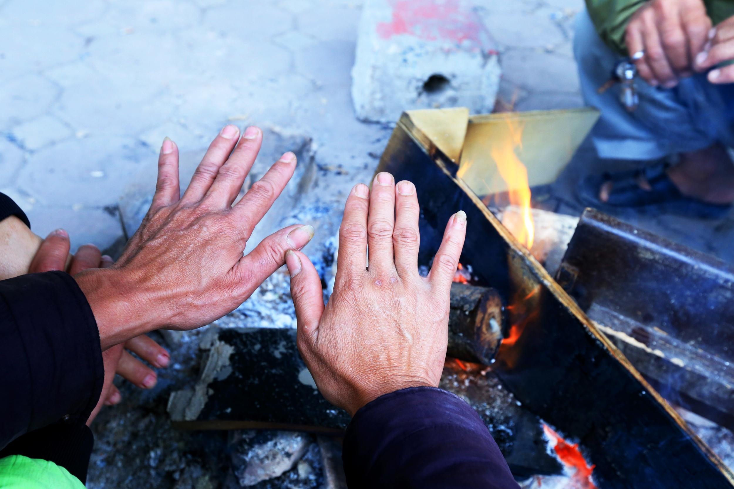 Nhiều người dân sử dụng phương pháp hơ lửa để trừ hơi lạnh khi đi đám tang về.